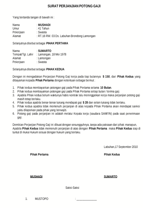Contoh Perjanjian Potong Gaji Karyawan | Sumber: Scribd