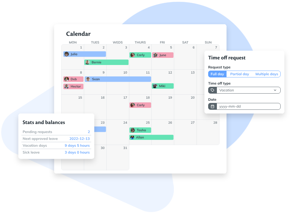 Clockify memudahkan pemantauan jadwal cuti tim karena seluruh cuti ditampilkan dalam bentuk kalender visual.