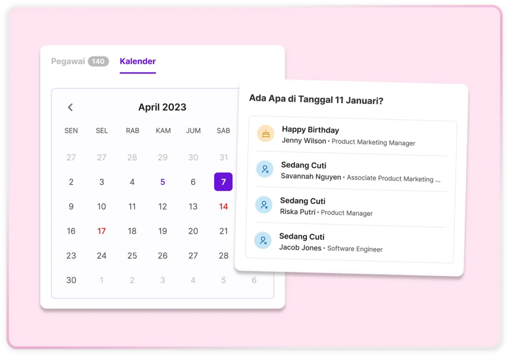 - Integrasi kalender sehingga cuti langsung tercermin pada jadwal kerja