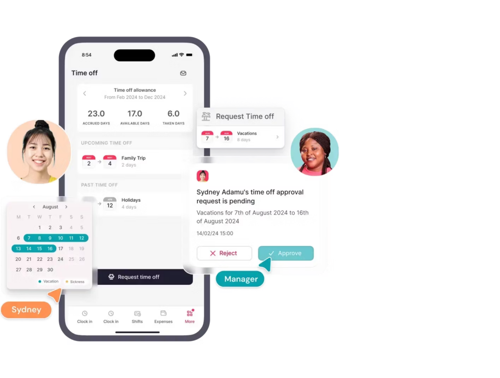 Connecteam dapat membantu mengurangi risiko kekurangan tenaga kerja karena data cuti terhubung dengan jadwal kerja.
