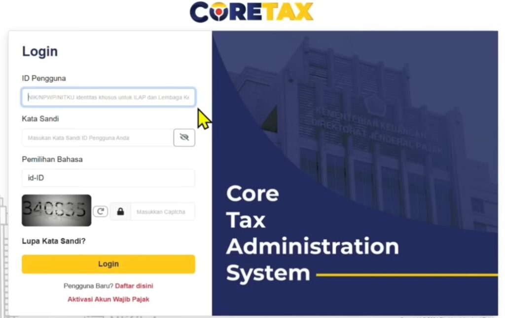 - Akses laman resmi di coretaxdjp.pajak.go.id.