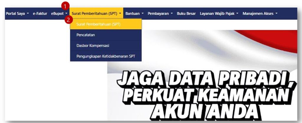 - Pilih menu Surat Pemberitahuan (SPT) di dasbor utama.