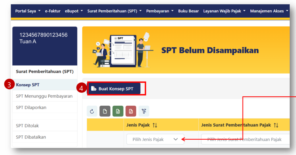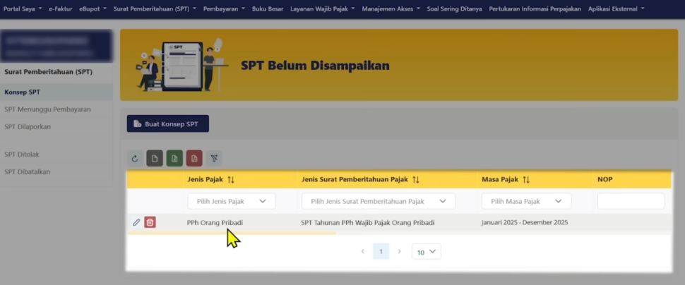 - Klik tombol Buat Konsep pada tab “Konsep SPT”.