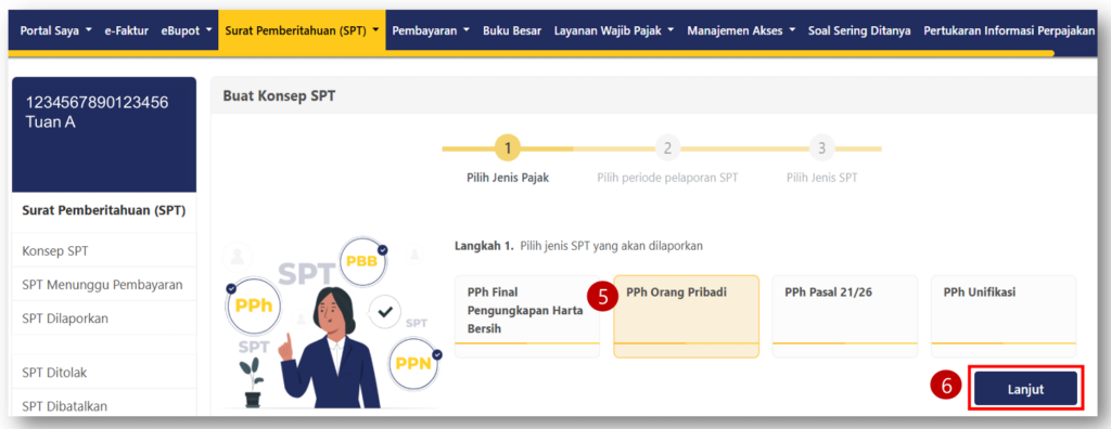 - Pilih jenis pajak “PPH Orang Pribadi”.