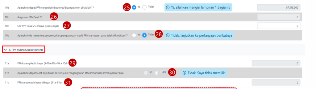 Bagian E: PPh Kurang/Lebih Bayar