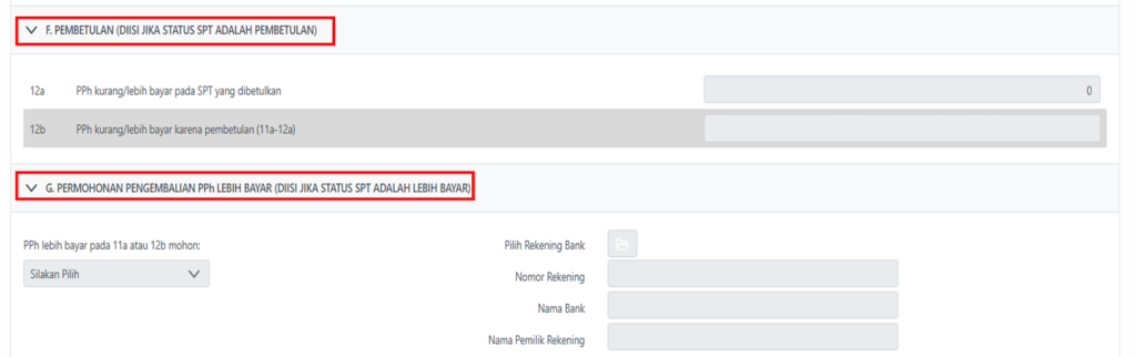 Untuk bagian G wajib dilengkapi hanya jika status SPT Tahunan Anda menunjukkan Lebih Bayar.