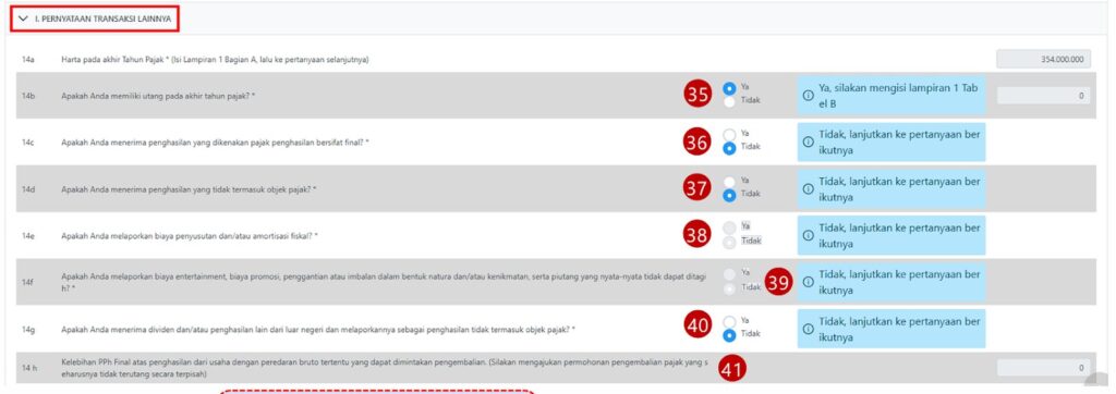 - Untuk 14g, pilih “Tidak” jika Anda tidak menerima dividen atau penghasilan luar negeri.