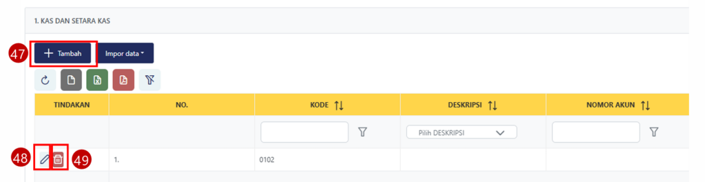 - Bagi WP yang sudah memiliki harta dari tahun sebelumnya, klik lambang Pensil untuk melakukan pembaruan atau lambang Hapus jika terdapat data harta yang sudah tidak lagi dimiliki.