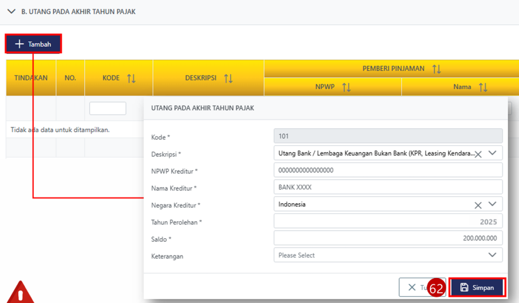 - Isi bagian B (Utang) jika Anda memiliki pinjaman bank yang masih berjalan. Lalu, simpan data.