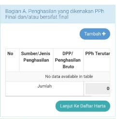 Isi jika Anda memiliki penghasilan yang dikenakan PPh Final atau penghasilan yang dikecualikan dari objek pajak. Jika tidak ada, lewati.
