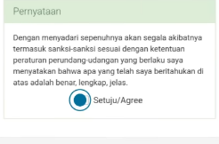 Pada halaman akhir, sistem akan menampilkan pernyataan bahwa seluruh informasi yang Anda isikan adalah benar dan sesuai keadaan sebenarnya. Centang kotak persetujuan untuk melanjutkan ke tahap pengiriman.