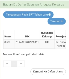 Isi data anggota keluarga sesuai kondisi awal tahun pajak. Setelah lengkap → klik Langkah Berikutnya.