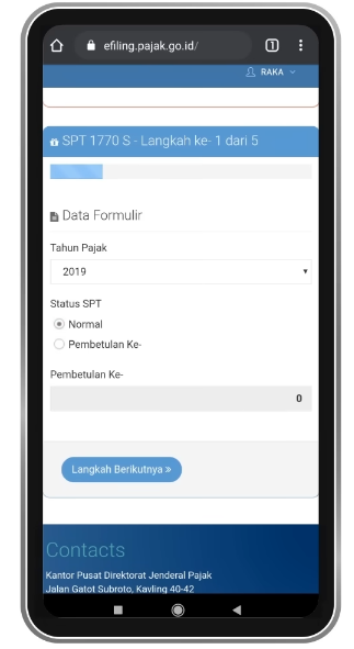 Setelah semua data benar, centang pernyataan kebenaran SPT, lalu klik Langkah Berikutnya untuk mendapatkan kode verifikasi dan pengiriman SPT.