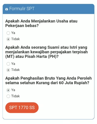 - Jika YA (di bawah 60 juta setahun) → Sistem akan mengarahkan Anda ke Formulir 1770 SS, formulir paling sederhana.