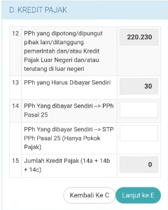 Bagian ini hanya diisi jika Anda pernah membayar angsuran PPh pasal 25.