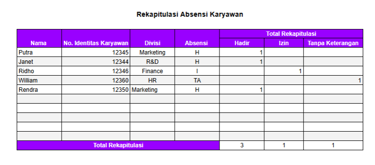 Baca Juga: 4 Contoh Template Absensi Karyawan Bulanan Excel Gratis!