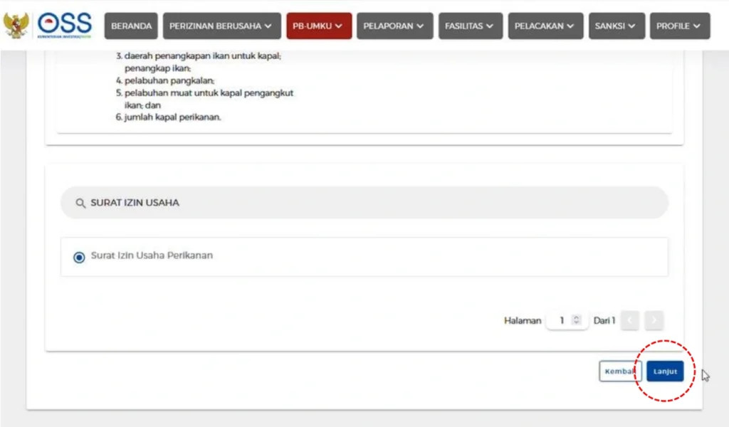 - Pilih jenis perizinan sesuai wilayah (pusat atau daerah), lalu lanjut ke tahap berikutnya.