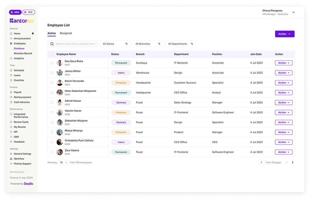 KantorKu HRIS bisa satukan semua data karyawan pakai Aplikasi Database Karyawan dengan filter lanjutan!