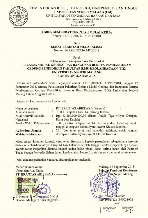 Contoh Addendum Proyek/Kerja Sama Bisnis | Sumber: PPID Universitas Negeri Malang