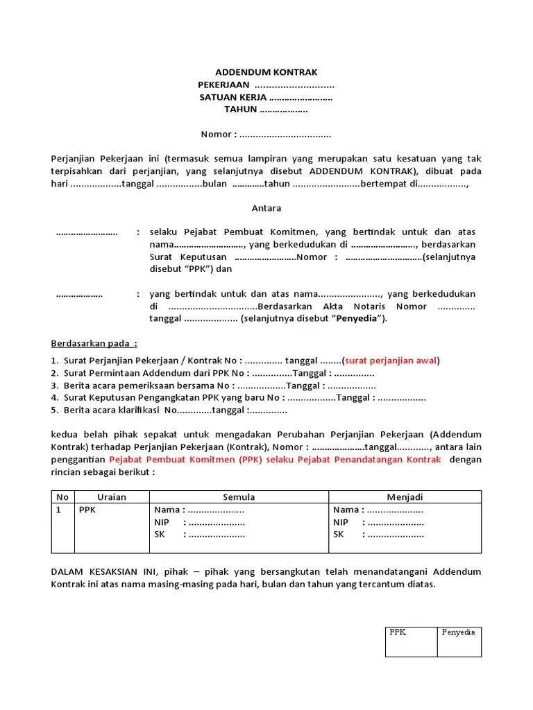 Addendum ini merujuk pada format dokumen yang dibuat dalam bentuk file Word (.doc/.docx) yang paling umum digunakan karena mudah diedit dan disesuaikan dengan kebutuhan perusahaan.