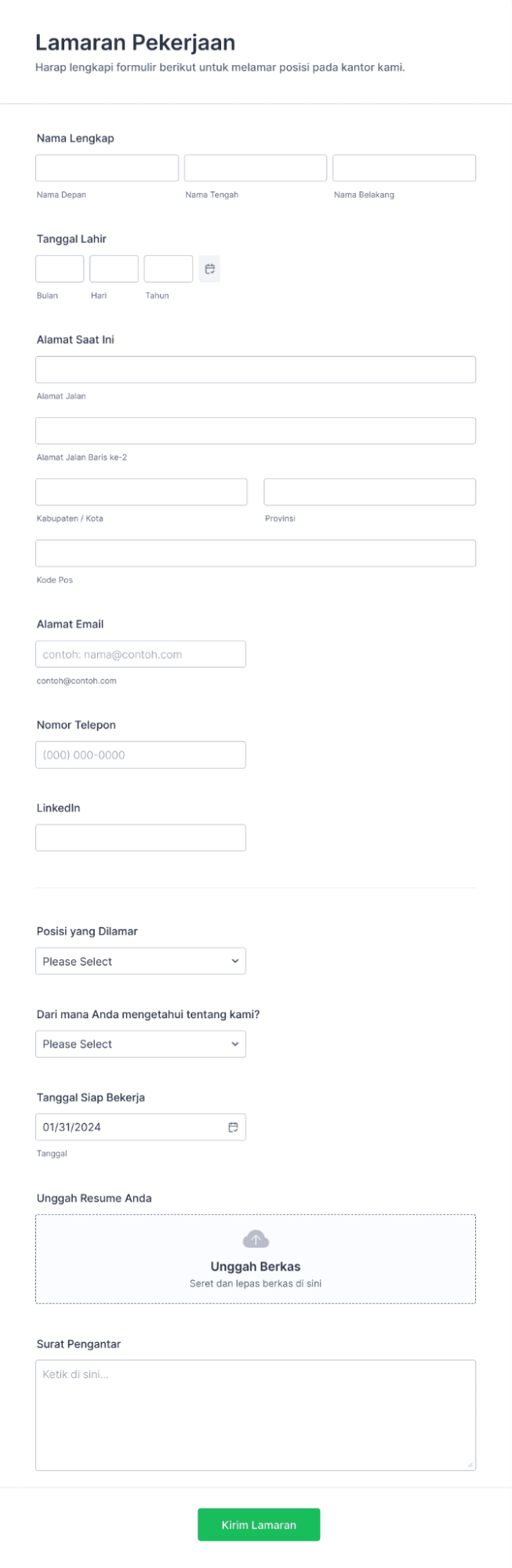 2. Contoh Formulir Pendaftaran Kerja Online