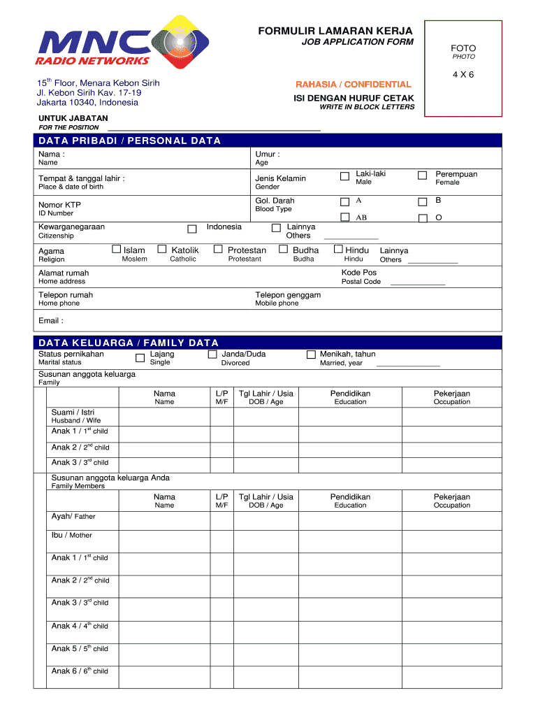4. Contoh Isi Formulir Lamaran Kerja