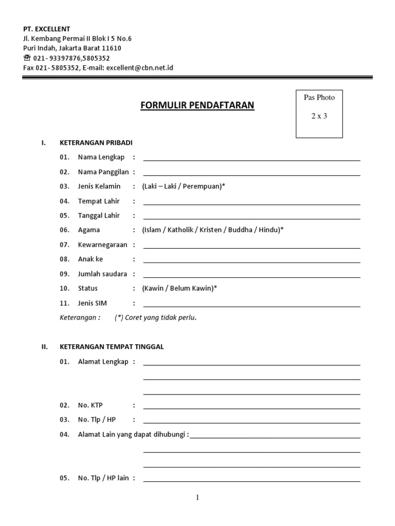 1. Contoh Formulir Pendaftaran Karyawan Baru