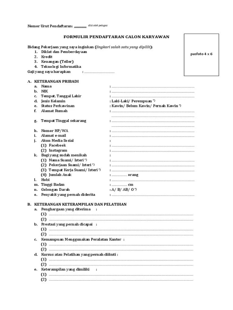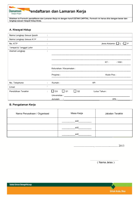 Download Formulir Pendaftaran Kerja