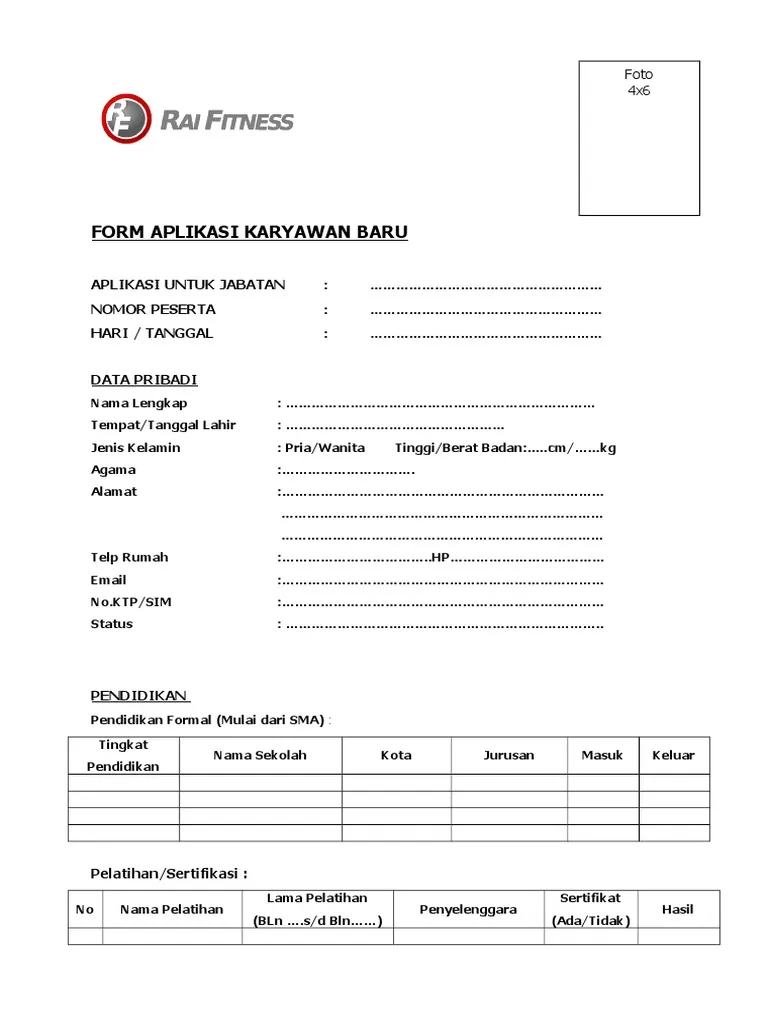 Cek 15 contoh formulir pendaftaran kerja untuk karyawan baru, online, hingga fresh graduate. Lengkap dengan template Word, PDF, & Excel.