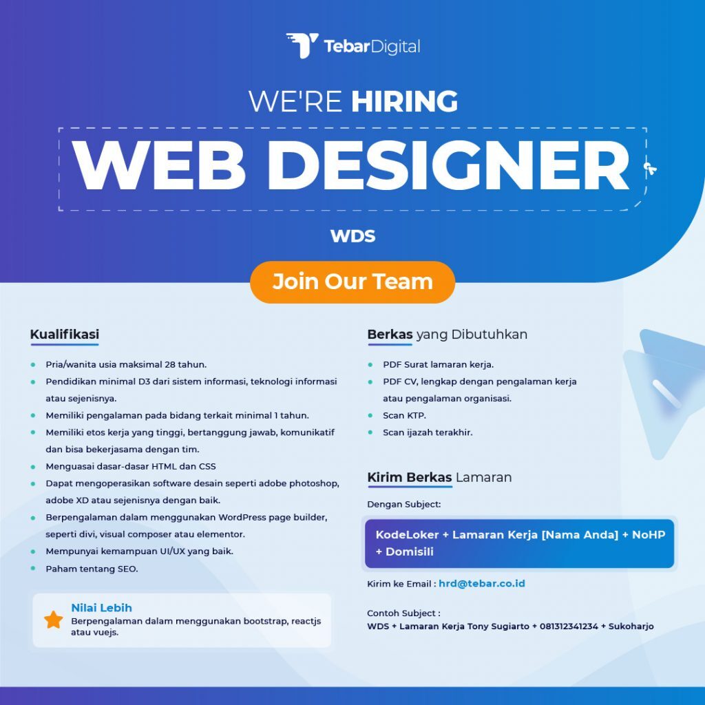 Integrasikan kata kunci yang umum dicari kandidat terkait posisi, misalnya “HR Admin”, “Programmer Web”, atau “Customer Service”.