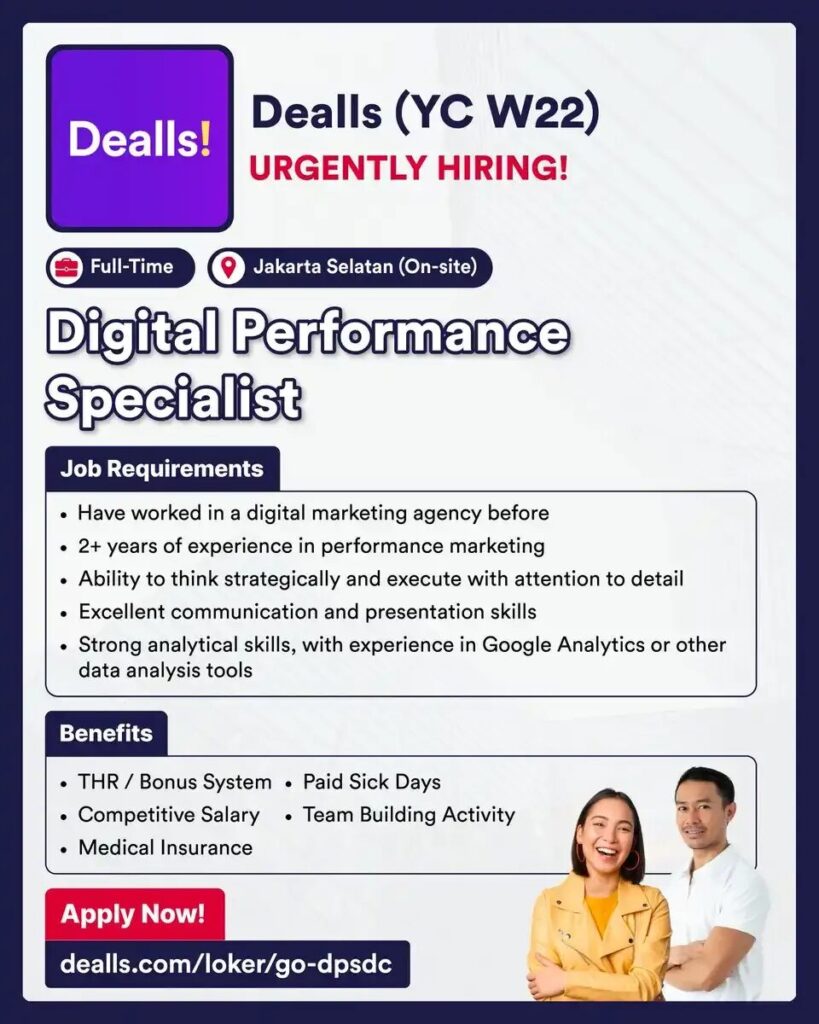 Benefit: BPJS Kesehatan & Ketenagakerjaan, jam kerja fleksibel, kegiatan tim & workshop digital marketing