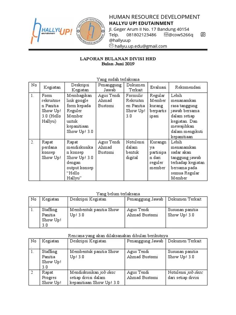 13. Contoh Laporan HRD Word