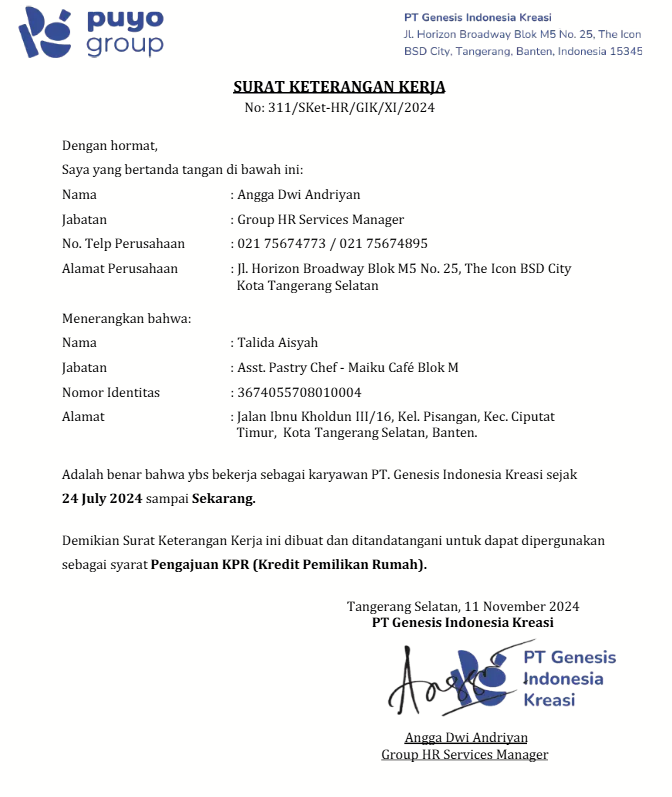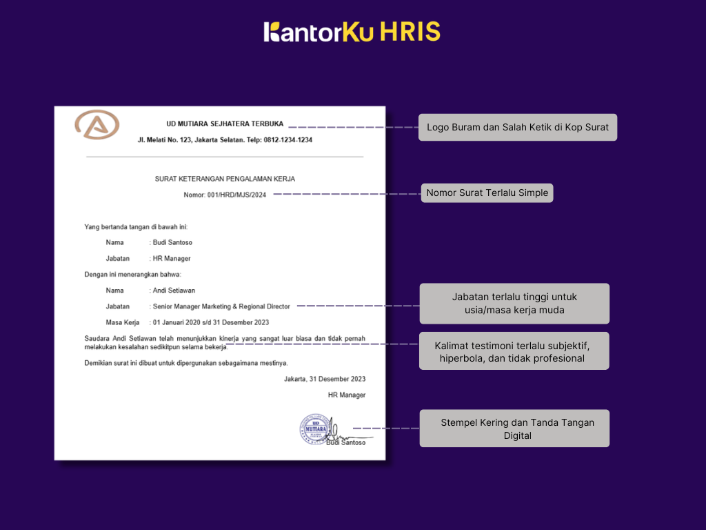 Surat tahun 2024 ditandatangani oleh Manager yang sudah resign sejak 2022.