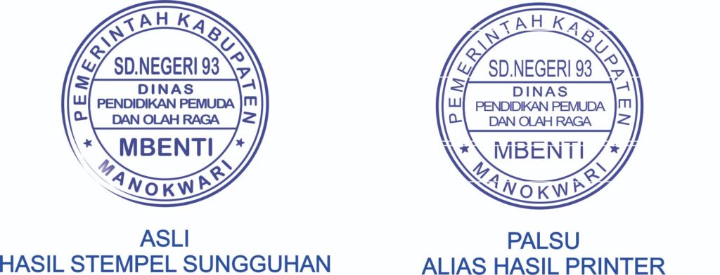 Sebaliknya, stempel basah asli menggunakan tinta khusus yang meresap kuat ke dalam serat kertas sehingga tidak mudah memudar meski terkena kelembapan.