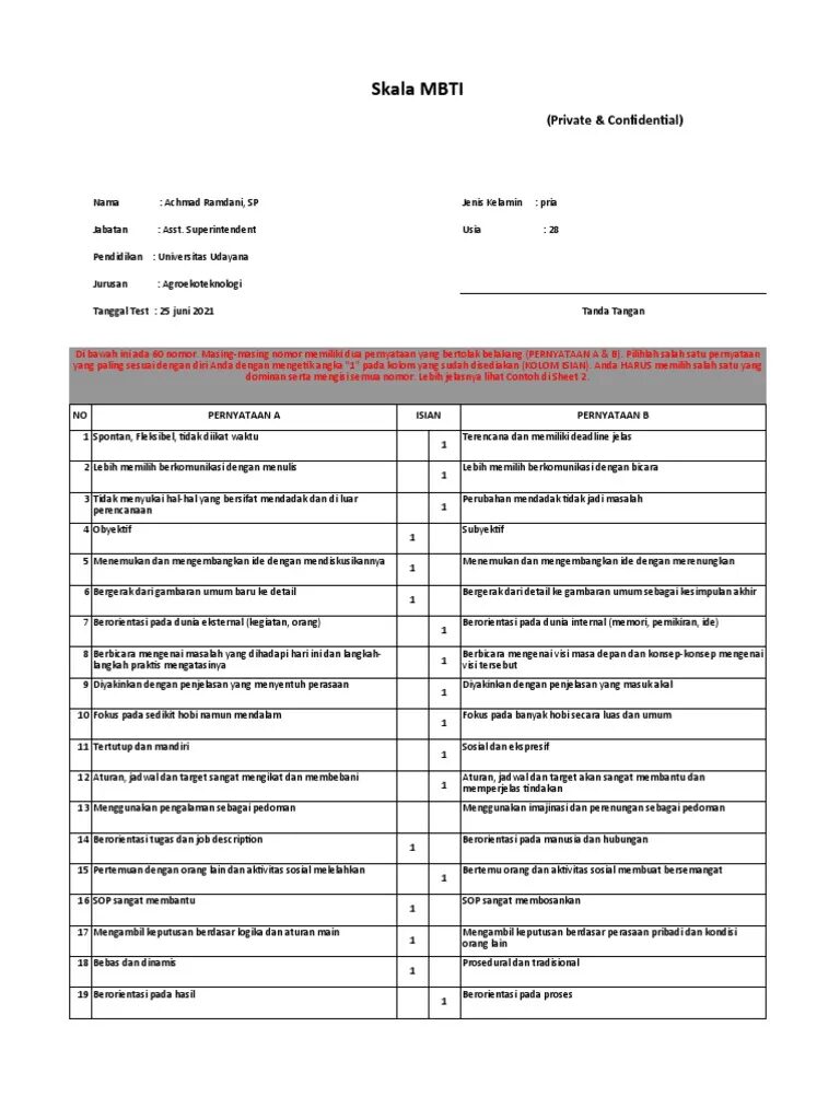 h. Tes MBTI (Myers-Briggs Type Indicator)