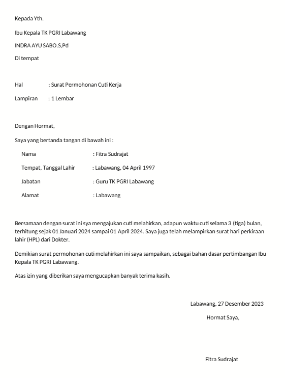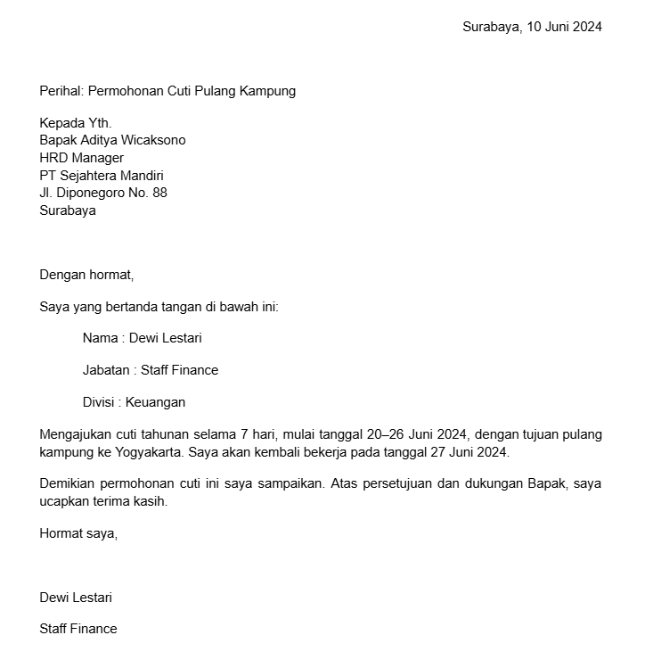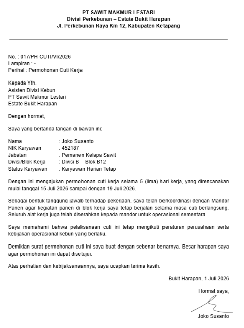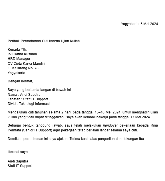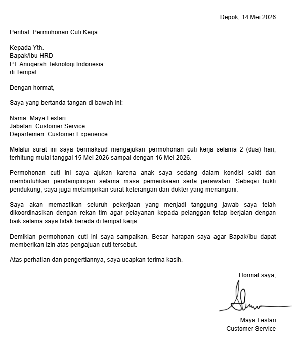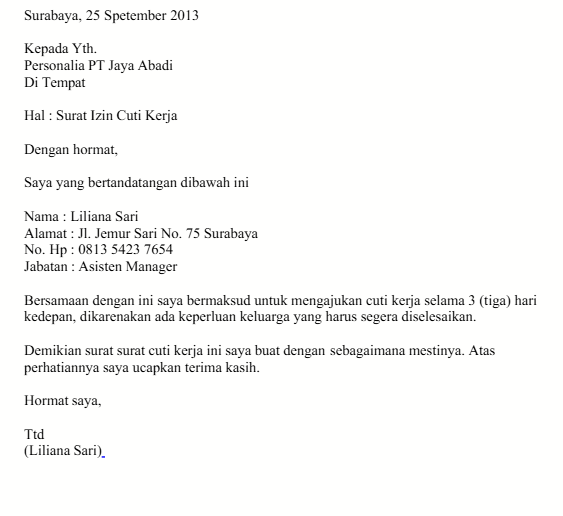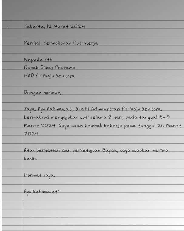 1. Apakah surat cuti kerja harus ditulis tangan?