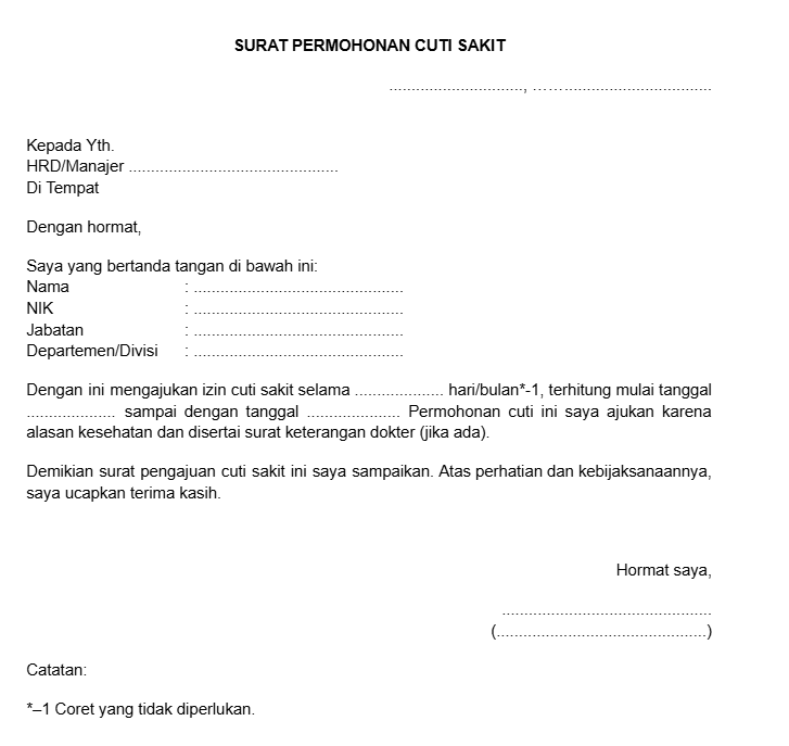 18 Contoh Surat Cuti Kerja Sakit, Urusan Keluarga, Menikah (+Template)