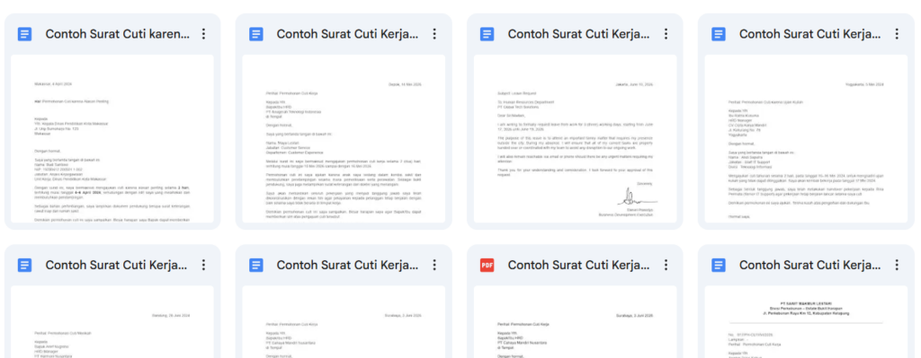 Berikut adalah kumpulan contoh surat cuti yang bisa Anda simpan sebagai template standar di perusahaan.