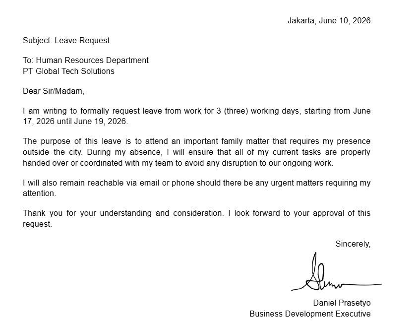 12. Contoh Surat Cuti Kerja Bahasa Inggris