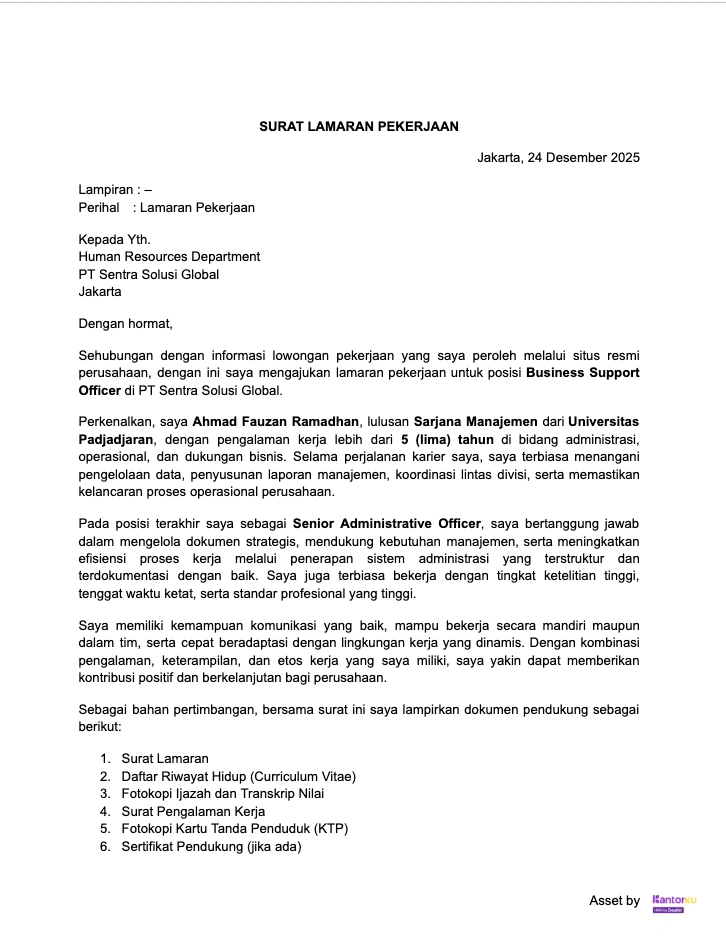 10 Contoh Surat Lamaran Kerja Word, Fresh Graduate, & Bahasa Inggris [Gratis Template]
