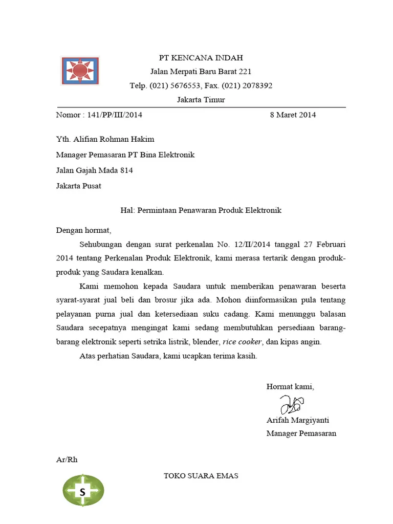 15 Contoh Surat Niaga Penawaran, Pemesanan, & Permintaan Barang [+Template]