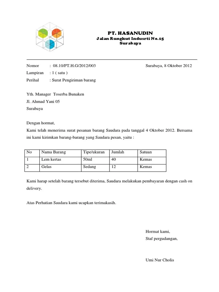 6. Contoh Surat Niaga Pengiriman Barang