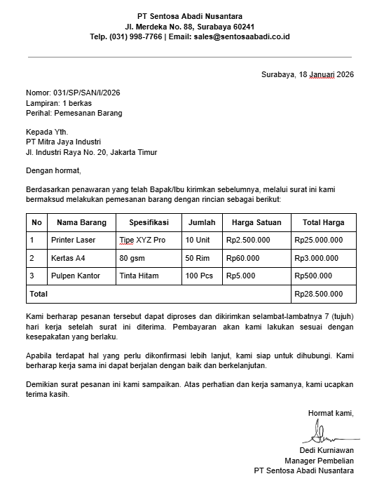 3. Surat Pesanan