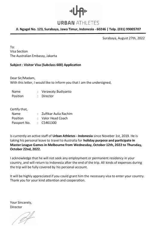 6. Contoh Surat Referensi Kerja untuk Visa