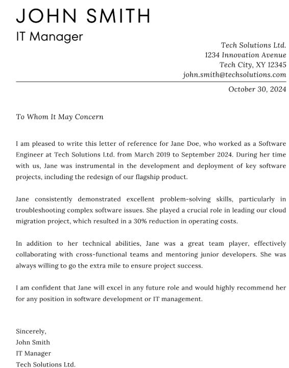 4. Contoh Surat Referensi Kerja dalam Bahasa Inggris
