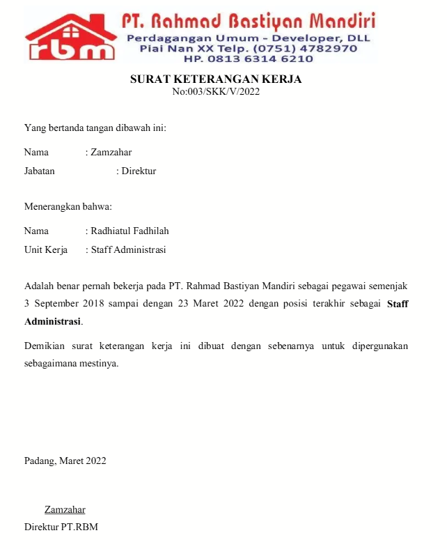- Surat Pengalaman Kerja: Memberikan keterangan resmi bahwa seseorang pernah menjadi bagian dari perusahaan.