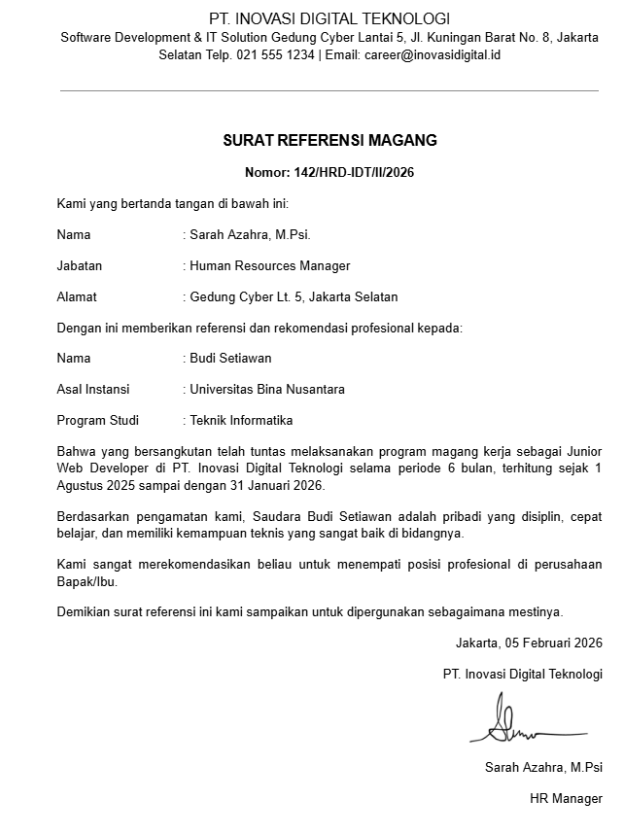 15. Contoh Surat Referensi Kerja Magang