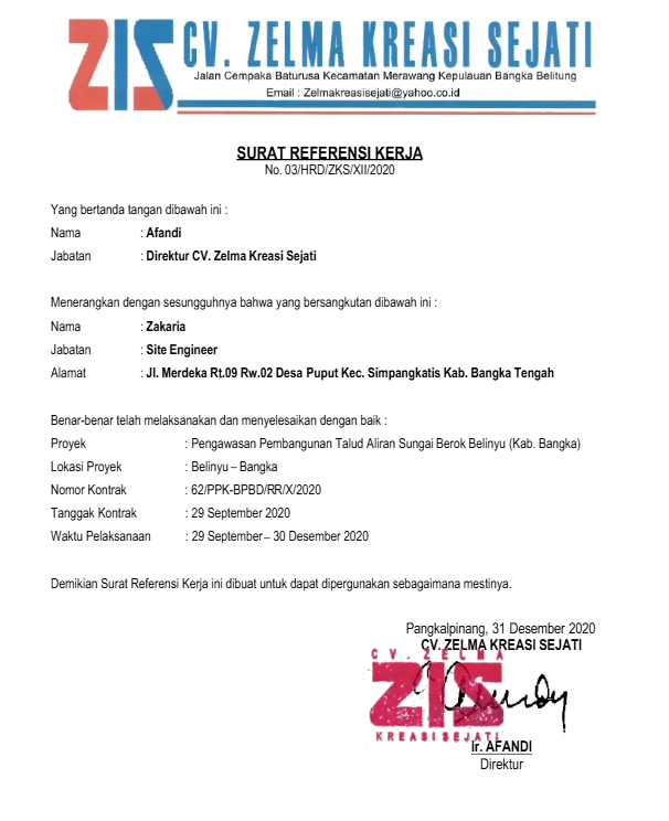 14. Contoh Surat Referensi Kerja Kontraktor