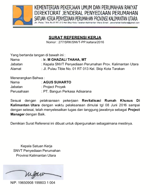 5. Contoh Surat Referensi Kerja Proyek