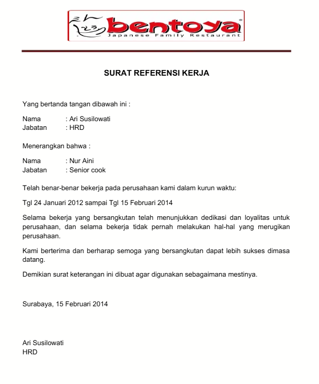 - Download Template Contoh Surat Referensi Kerja untuk Karyawan